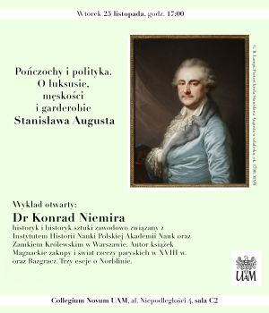Wykład gościnny dra Konrada Niemiry pt. Pończochy i polityka. O luksusie, męskości i garderobie Stanisława Augusta wtorek, 25 listopada, godz. 17:00, IHS UAM Collegium Novum, sala C2